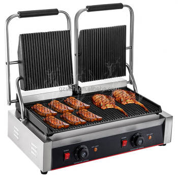 Sizhi peralatan peralatan restoran OEM panggangan Steak piring ganda elektrik pembuat Pres Sandwich Panini Contact Grill komersial