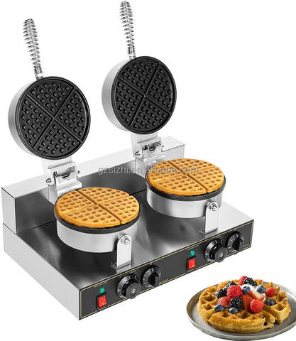 業務用スナック機器ラウンドサンドイッチワッフルメーカーダブルヘッドベルギーワッフルメーカー